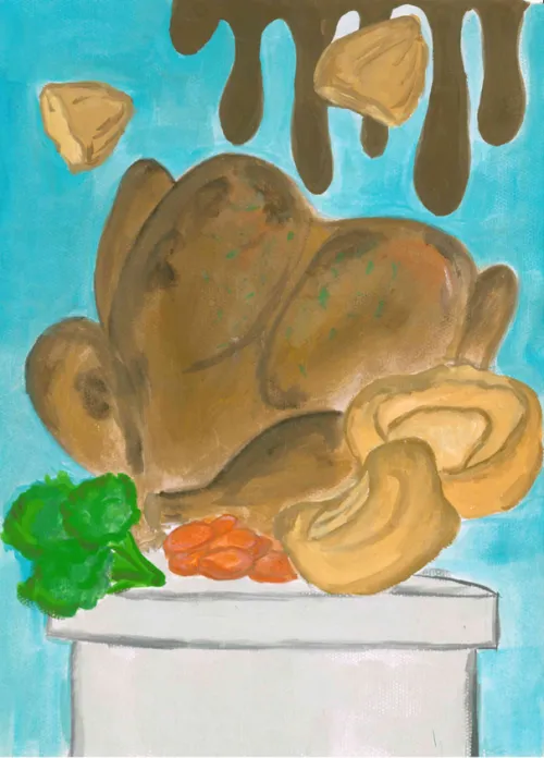 I have drawn a Sunday roast dinner, as it links to London’s culture by representing a beloved tradition that brings people together, whether it's at home with family or in one of the city's iconic pubs.