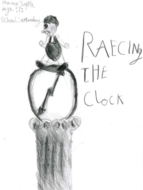 My drawing is about London being a fast-paced place to live, where you’re always racing against time.