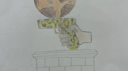 Stop war the picture represts peace and anti war. It shows a dove nurturing the world by protecting it from multiple bullets and bombs. It is a symbol to stand against all conflict especially now in the world and to maintain peace over power.