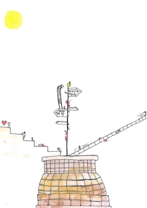 I created this because, in life, you always have the chance to build a career, and your journey will never be easy. You always have to work hard to achieve what you want. I used this set of colors because it represents how everyone is working hard, and it conveys strong emotions and a powerful message.