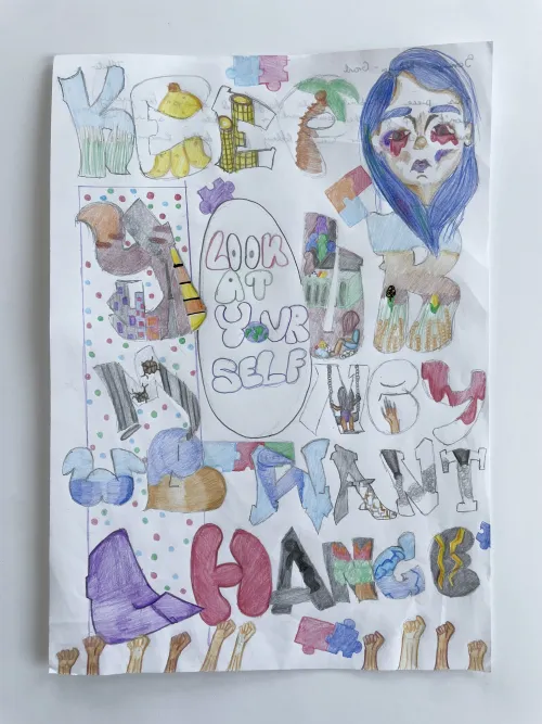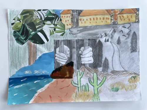 Mixed media art work about conflicting emotions, mental health and feeling trapped.