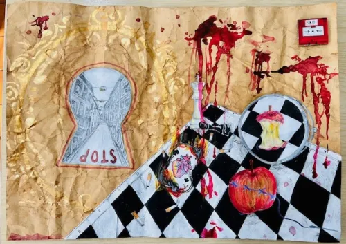 Mixed media art work about life and death.