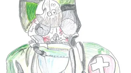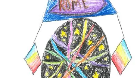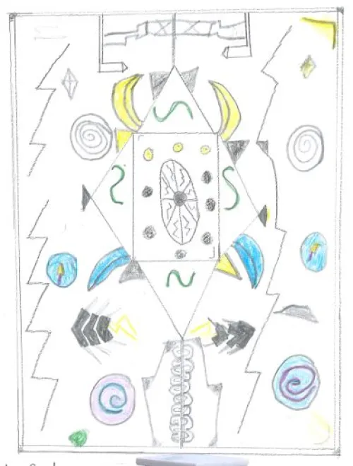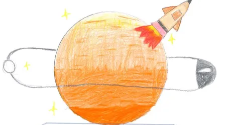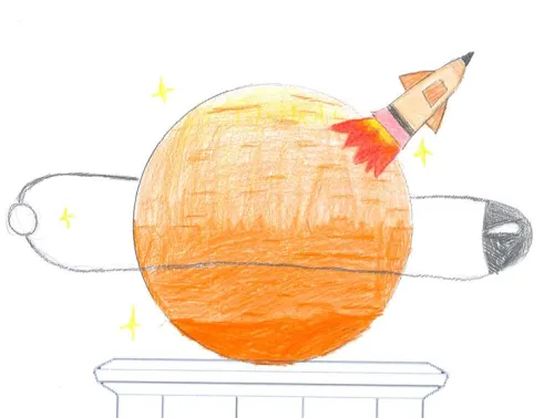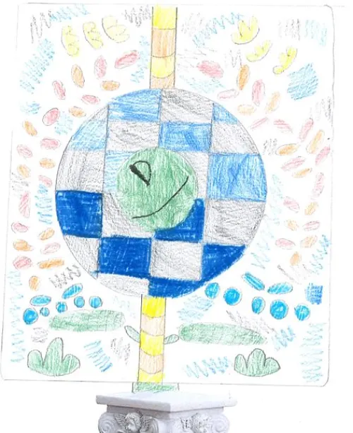 The message of my piece is creativity. It needs to be bigger on this Earth as I believe we should create a new world, all creative and happy. I love arts and crafts, that’s why instead of Saturn’s rings I did a safety pin to show everything can be creative.