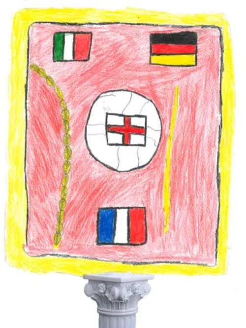 The design represents power, purple is the colour of power. The yellow is important for being victorious as the Romans were. The stars are the God they would say prayers to.