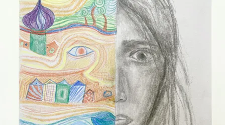 My artwork represents the balance of how someone looks or responds on the outside compared to how they really feel. The colours I used show the thoughts and creativeness of someone's mind and how they are viewed by other people.