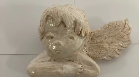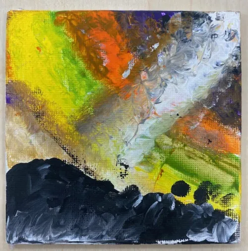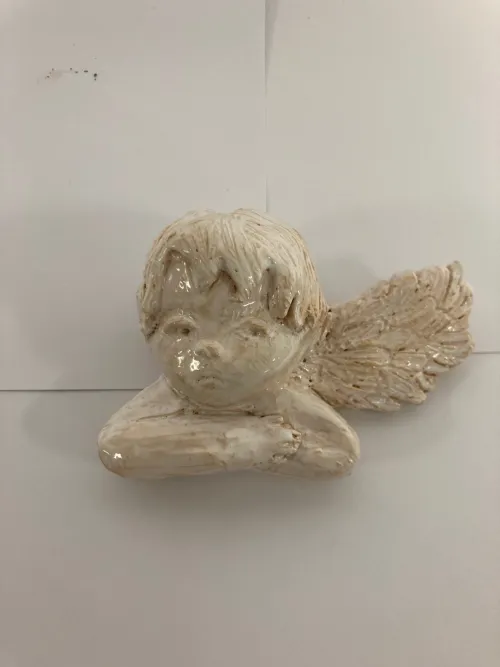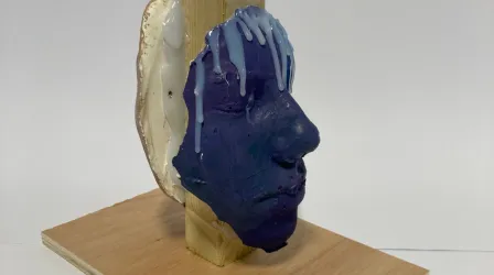 This work, shaped like a tear drop, is a self portrait, reflecting on sadder times in life.