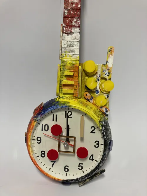 This work is an assemblage of found items, representing the idea that music will always live on.