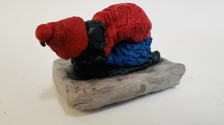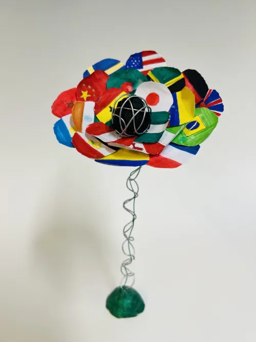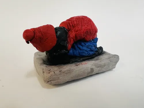 My sculpture represents humanity being unable to fix the mess they've created and then being overwhelmed by it. I made it using found items of rubbish. I chose things that are very colourful and interesting in shape to catch the viewers' attention. The significance of the piece is the idea that we need to start saving our planet now or it may become too late.