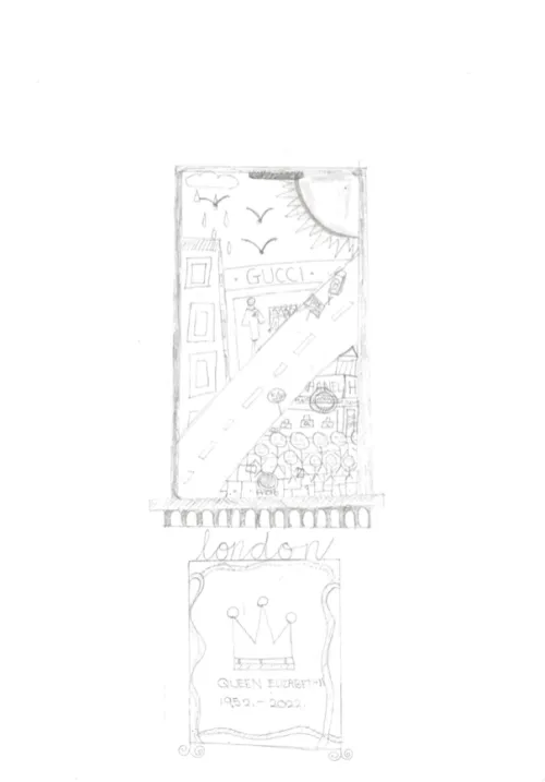 In this picture, I drew a phone capturing a scene in central London. I did this because I always remember taking pictures of the shops I walked past.