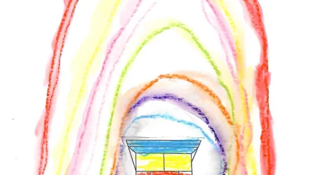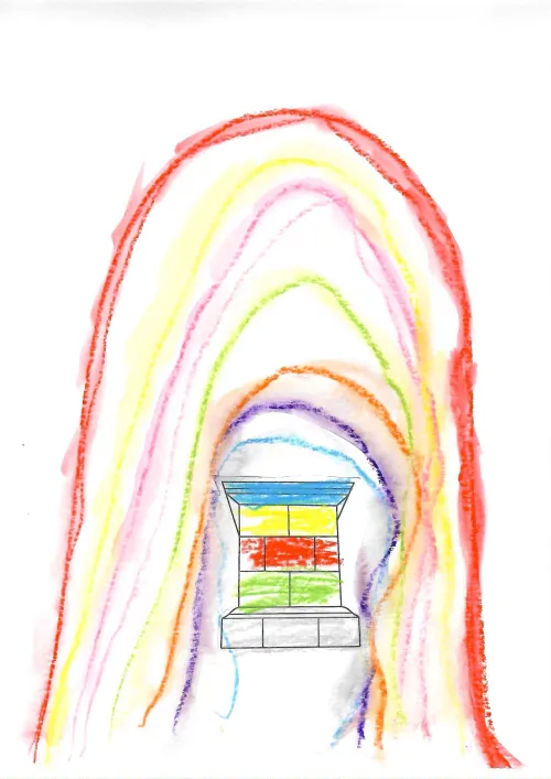 She has used Stabilo Woody 3 in 1 pencils to create this colourful rainbow. The rainbow represents light and would spread to those who walking past it in Trafalgar Square.
