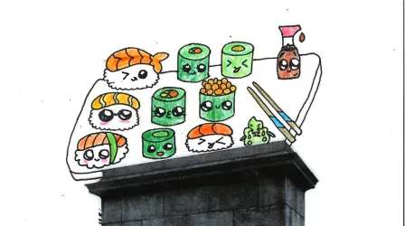 I drew sushi because it cheers me up whenever I need to relax. I love sushi because there are so many types you just can't count!