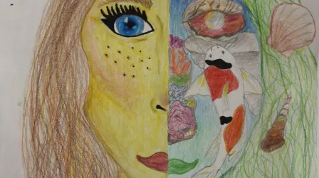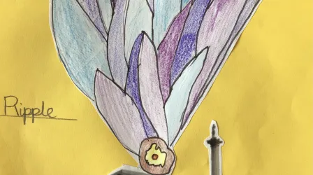 My artwork is called ripple because I believe that everyone can make a big difference (like a ripple!). The blue symbolises hope and the purple symbolises royalty because we should all be treated like royals.