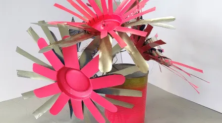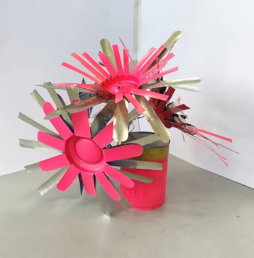 My sculpture symbolises hope and Growth. It is painted in pink because refers to breast cancer which my nan had. She now has cancer for second time in the liver and she has designed her garden based on the moto Junk and Joy. She has a yard full of things like this. She is going through a harsh treatment and I hope she recovers.
