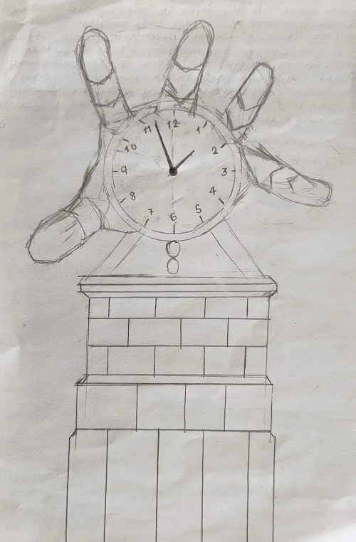 I did this piece based on past experiences. This piece coveys the following message: don't have the mindset that you have all the time in the world and don't leave important things for the last minute. Don't waste time or else you'll be reaching out for it.