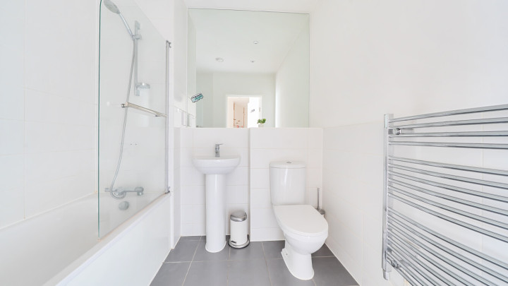 - Family bathroom with shower over bath