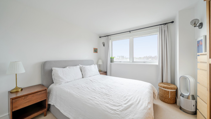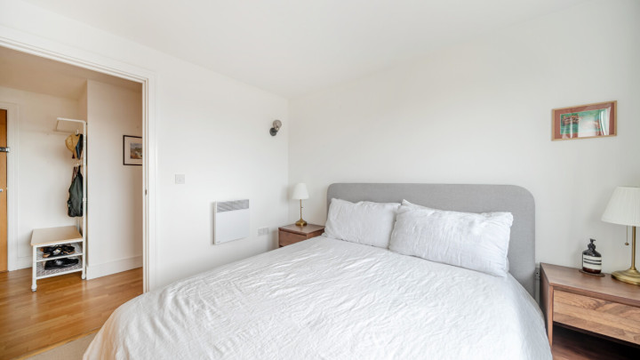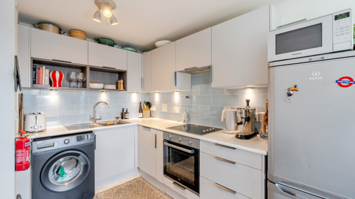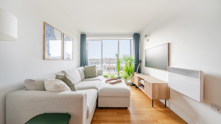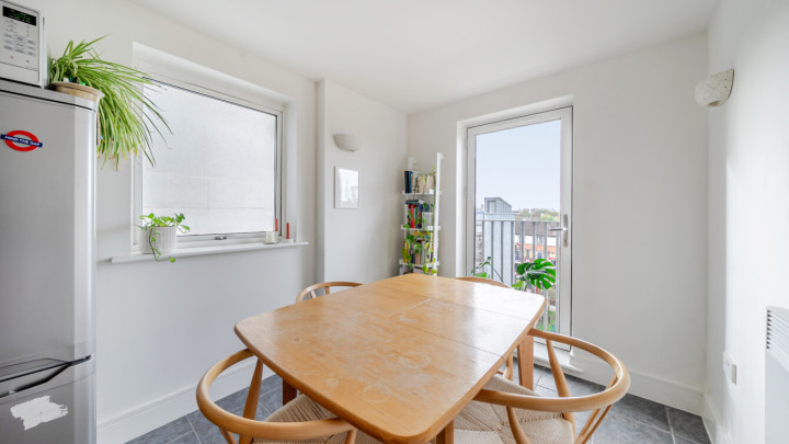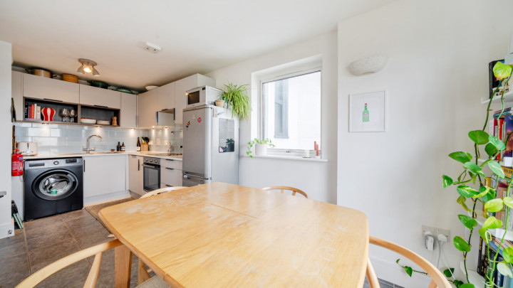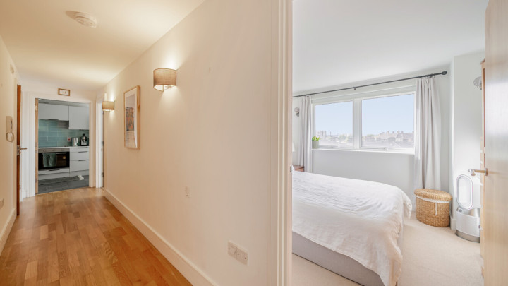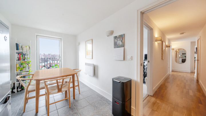 Enter this bright, well proportioned apartment via a wide hallway with storage. The dual aspect kitchen diner area opens onto a juliette balcony. The modern kitchen includes an integrated oven, hob and extractor and spaces for your white goods. Two generous double bedrooms are in the centre of the apartment, serviced by a family bathroom. The separate lounge opens on a south west facing balcony with views over south London and of the new year fireworks.