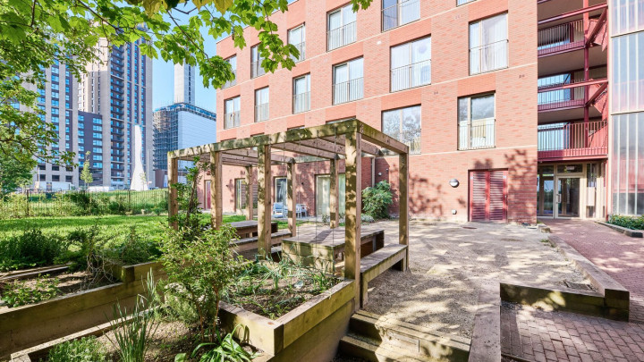 The development includes a communal garden for residents to enjoy, offering a serene space to relax.
