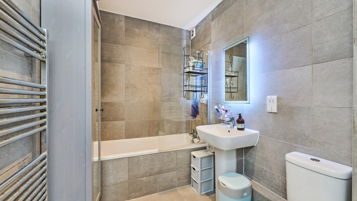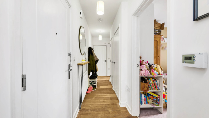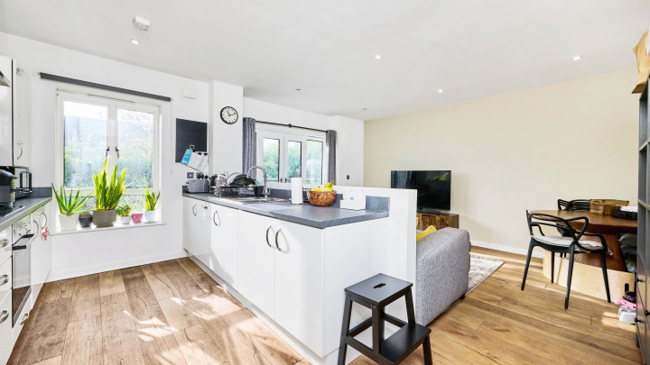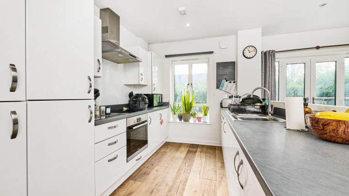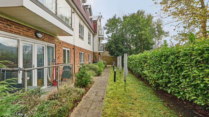The property is situated on a quiet residential road within a small block of nine flats, all benefitting from the friendly atmosphere of the neighbourhood. It lies within the catchment area of well-regarded local schools.