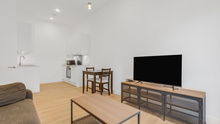 The flat features one bright and airy living room, offering excellent natural light that complements its efficient layout.