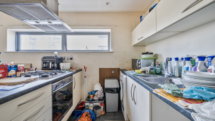 This apartment consists of an open-plan kitchen and living area which is full of natural light. This opens out onto a private balcony which is great for relaxing and etnteraining. The kitchen is fitted with cream units and a dark grey marble effect worktop with white tiling. The kitchen also benefits from integrated appliances. There are two good size bedrooms, one of which also leads onto the private balcony and also benefits from an en-suite bathroom. The main bathroom comes complete with white three-piece suite with a shower over the bath.