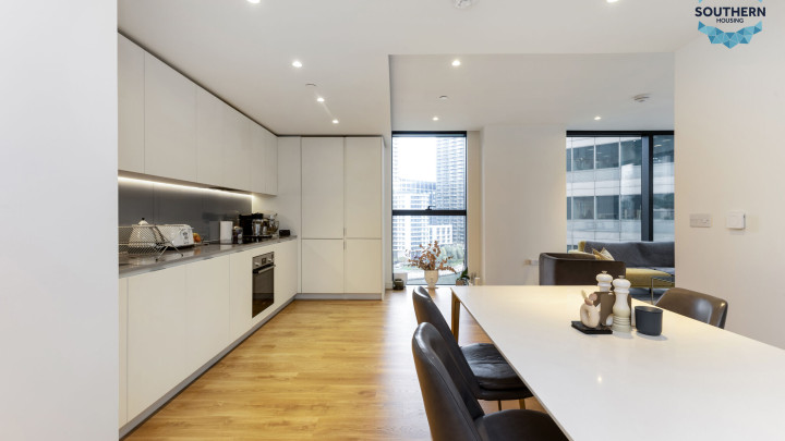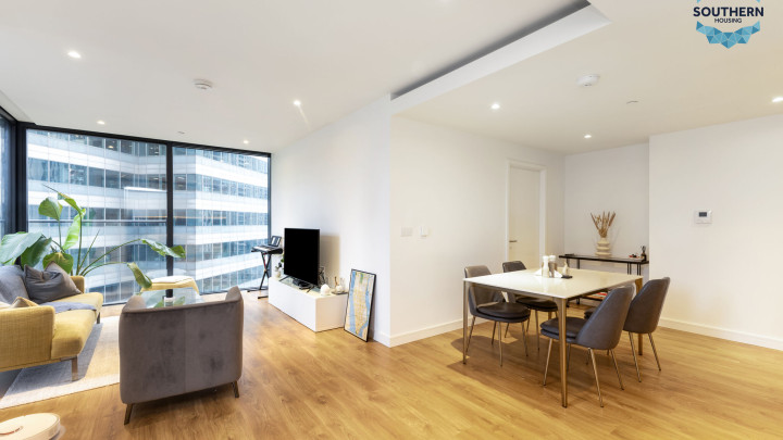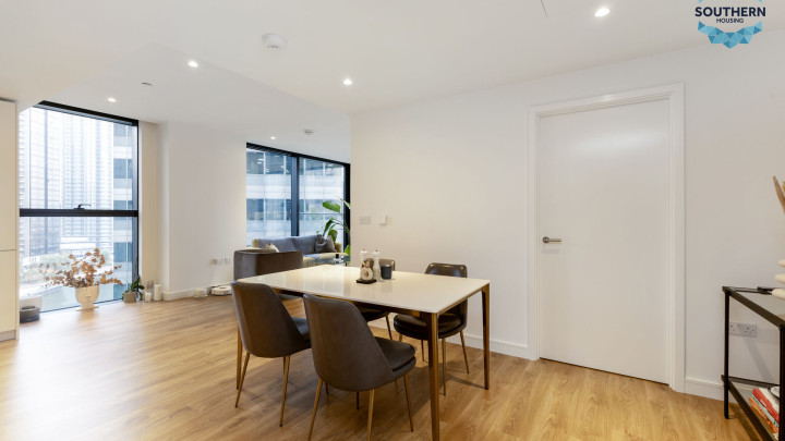 Southern Housing are delighted to present this stylish two-bedroom ninth-floor apartment in the sought-after Hampton Tower development offers modern living with floor-to-ceiling windows and stunning London views. Residents benefit from on-site amenities, including a concierge, gym, and communal gardens, all close to Canary Wharf and excellent transport links.