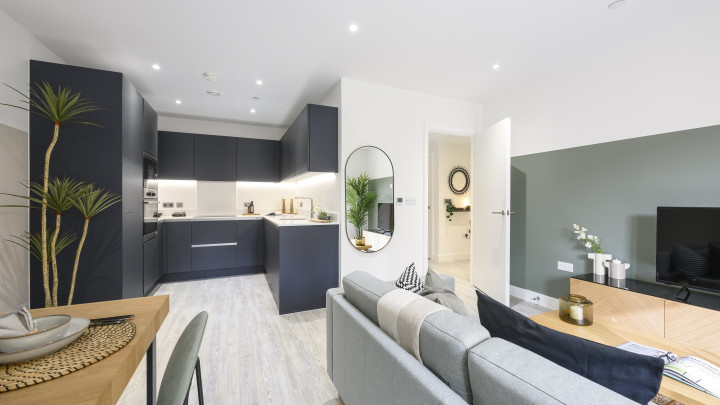 Apartment G1.5 offers a stylish interior with open-plan kitchen/living/dining area leading to a private large terrace/garden overlooking the podium gardens. Convenient for modern living, this apartment boasts a contemporary kitchen with fully integrated appliances, sleek handle less units with soft close doors and drawers and feature LED lighting - ideal for impressing your guests when cooking up a storm.
