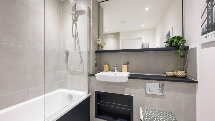 Beautiful Amtico flooring runs throughout the apartment with plush carpet to all bedrooms offering the ultimate comfort. The stylish bedrooms all feature full height glazing allowing light to fill the space, with a fitted wardrobe and elegant en-suite to the principal bedroom. The contemporary bathroom comes complete with modern sanitaryware, feature mirror cabinet with LED lighting and matching bath panel and vanity top to give a touch of elegance and style. You'll also find plenty of storage throughout this apartment.