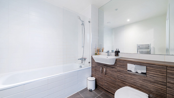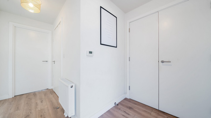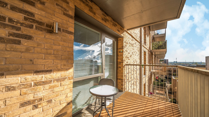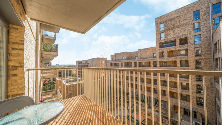 Enter this apartment via a spacious hallway with lots of storage. The open plan living area has a door to a private south west facing balcony overlooking the communal courtyard. The modern high gloss kitchen includes fully integrated appliances. A well proportioned double bedroom and a contemporary bathroom complete the accommodation.
