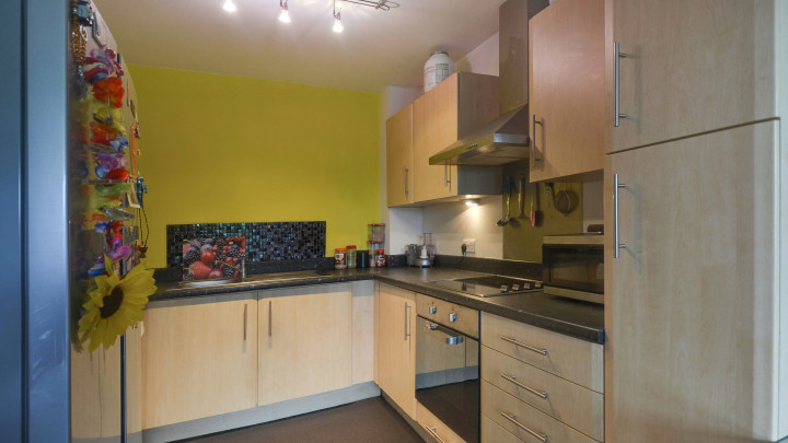The property features a balcony, providing a charming outdoor space to relax and enjoy your surroundings. The kitchen is well-equipped with modern appliances, including an integrated fridge, cooker, freezer, washing machine, dryer, oven, hob, and extractor. The development offers a communal garden, perfect for leisure and social gatherings. Additionally, the property provides allocated parking for residents' convenience. For added accessibility, there is lift access available within the building.