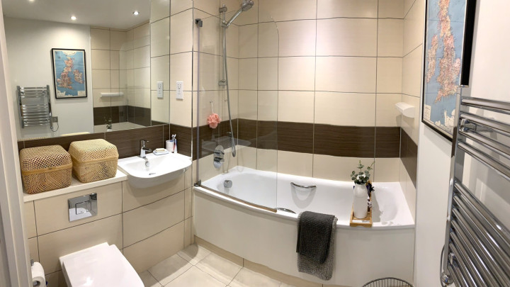 A spacious, two-bedroom maisonette, situated on the corner of the ground floor of a recently built complex at Smithfield Square, Hornsey. The property features an open plan living room and kitchen, with access outside to a large, private patio. The well-proportioned bedrooms are carpeted and provide ample space for king-sized beds and additional furniture. The bathroom is modern but neutral, with luxury fittings and plenty of storage. A walk-in utility room with double doors, provides plenty of storage and space for domestic appliances. High quality fixtures and fittings throughout give a luxury feel and an extraction system ensures clean and dry air throughout.