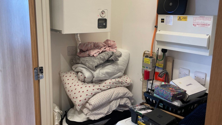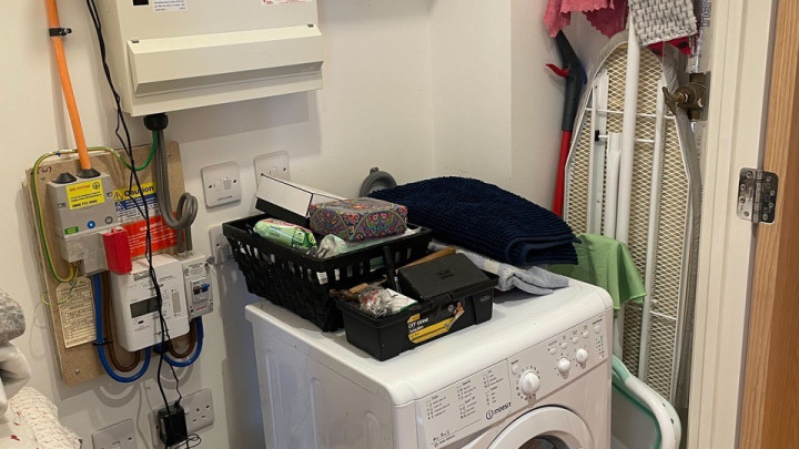 There is a washing machine/dryer in the utility cupboard 2 and a further utility cupboard used for storage and coats and shoes.