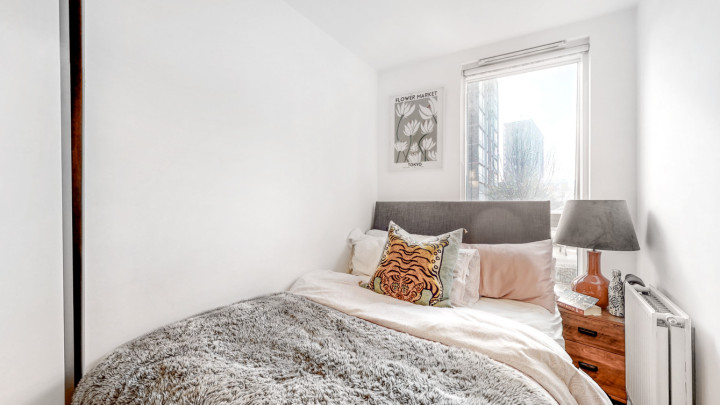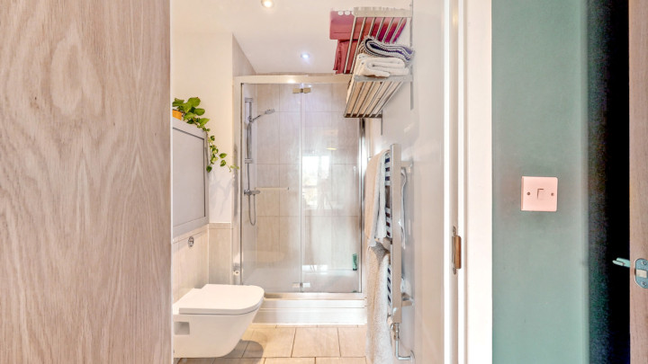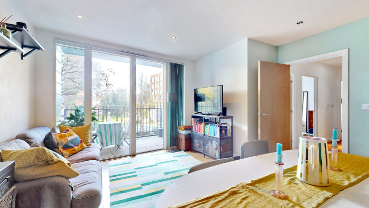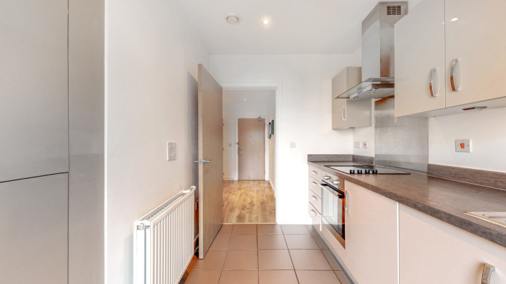 Enter this this well presented two-bedroom, two-bathroom, south facing apartment via a spacious hallway with storage. There is a separate kitchen fitted with high gloss units and including fully integrated appliances. The generous reception room features floor to ceiling windows opening onto a balcony large enough to dine and relax. One of the two well proportioned double bedrooms includes an en-suite shower room and fitted wardrobe. The other bedroom is served by a contemporary family bathroom.