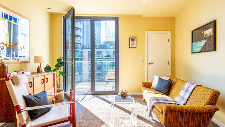 Centrally located on the edge of the Square Mile, this much loved home is situated on the top floor, facing southwest and soaks up the sun, which streams through the bedroom floor-to-ceiling window and the living room’s balcony doors. You can breathe in the open skies, look down on the bustle below, and enjoy views of the city that stretches out before you.
