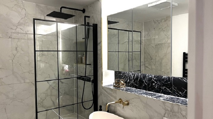 - Open plan modern fitted kitchen with a range of matching wall and base units with integrated oven, hob and hood. Built-in fridge/freezer and dishwasher.
