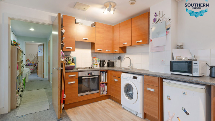 We are delighted to market this spacious two bedroom apartment. You are welcomed into a large hallway, benefiting from a large storage cupboard, allowing plenty of space for coats and shoes. The living room and kitchen area is open plan and modern, providing ample space for a dining area. The room is large and bright, thanks to the doors leading to the large balcony, providing additional space for hosting. The kitchen is a good size with many storage cupboards, also providing an integrated oven, hob and extractor fan. The master bedroom is a generous size, has a large fitted wardrobe, and also benefits from an additional balcony. Finally there is a good sized with floor to ceiling tiles and a shower over bath.