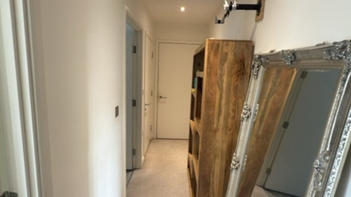 - Entrance hallway with large storage cupboard and video entry phone system. Neutral décor throughout.