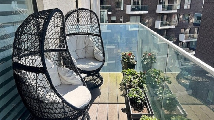 - Balcony access via living room overlooking communal garden
