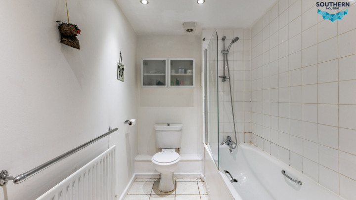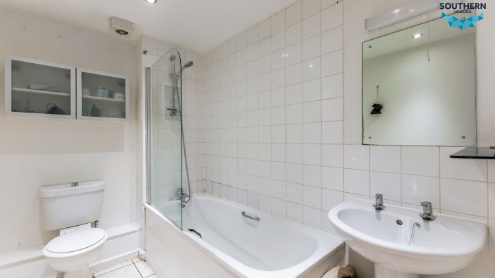 Lastly, you have the family bathroom with a shower over bath and floor to ceiling tiles.