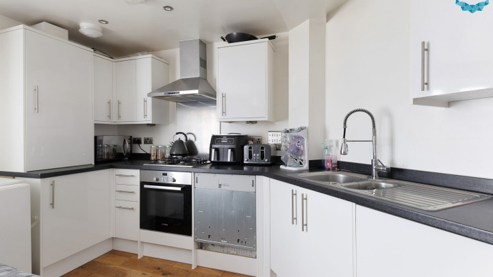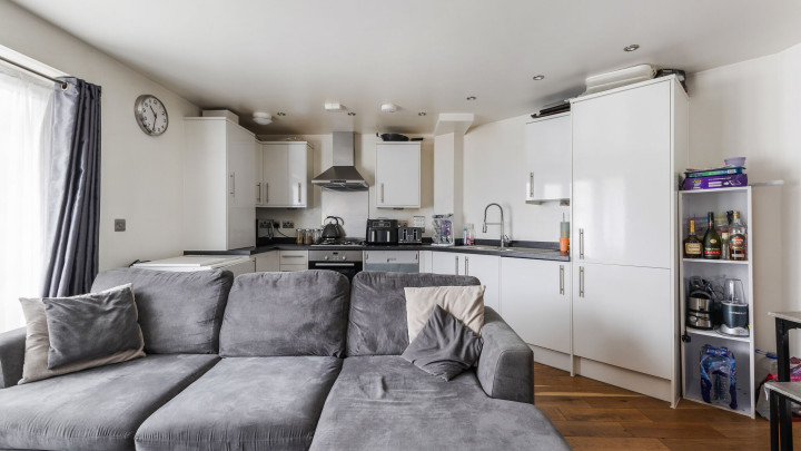 This property benefits from a good-sized living room with an open plan kitchen area.