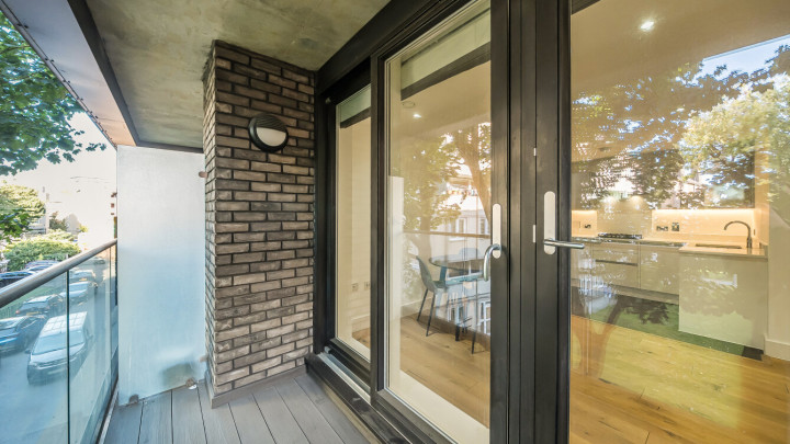 The property features a large open-plan living and dining area with wooden flooring, excellent natural light, and direct access to two private balconies - ideal for relaxing with a morning coffee or unwinding in the evening.