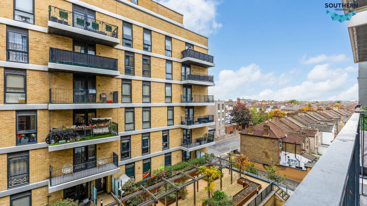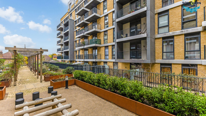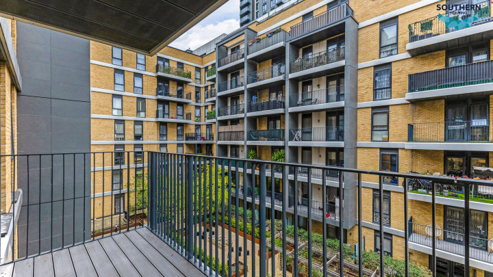 A key feature of property is the private balcony, providing a peaceful outdoor space to unwind; from here, you can enjoy pleasant views over the development and the beautifully maintained communal gardens, adding a touch of tranquillity to this modern urban home.