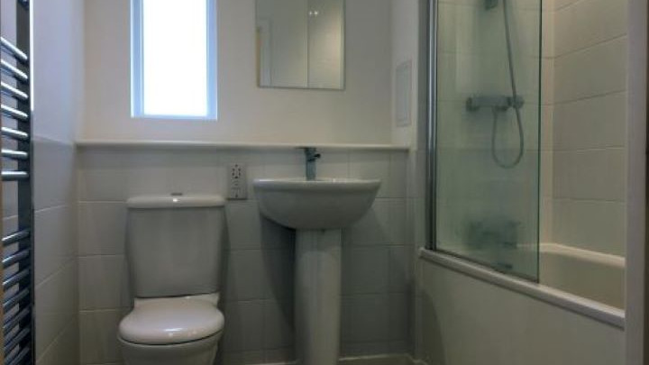 • Bathroom with Saloni wall tiles, thermostatic shower facility over bath and fitted shower screen