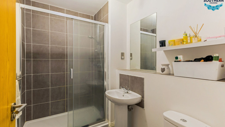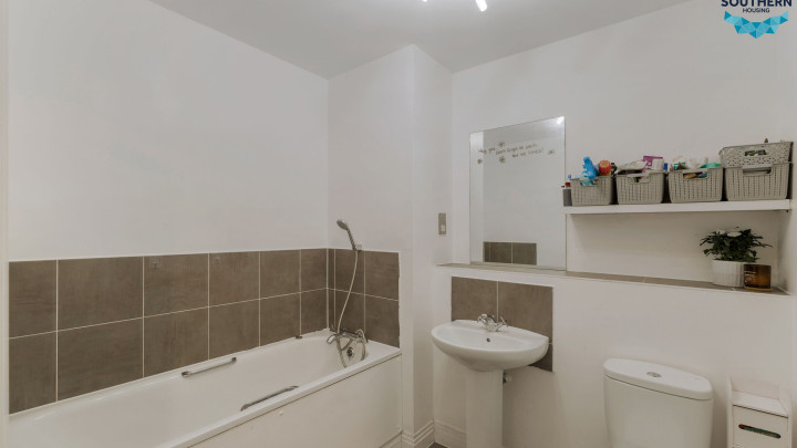 Completing the apartment is a large, family bathroom featuring a shower over the bath.
