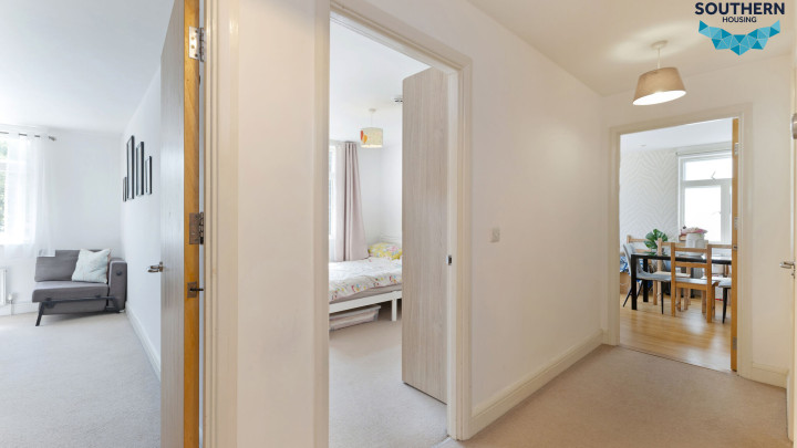As you enter, you're welcomed into a spacious hallway with two handy storage cupboards, perfect for keeping shoes, coats, and other essentials neatly organised.