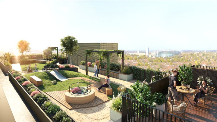 Heart of Hale designed by Pollard Thomas architects offering highest standards with handless fitted kitchen, open plan living area and good sized bedrooms with ample storage space. Oversized windows flood your apartments with light and the rooftop garden is for the exclusive enjoyment of the residents.