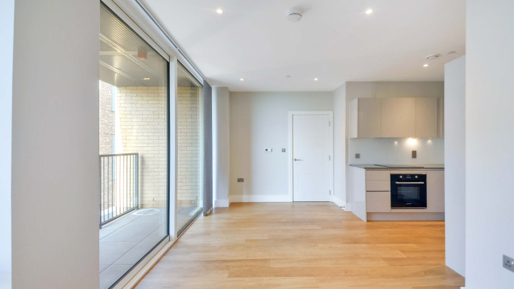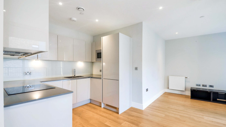 This beautifully presented one-bedroom apartment at Keel Apartments offers modern, open-plan living in a vibrant part of south west London. The spacious living area benefits from floor-to-ceiling windows, flooding the space with natural light and creating a bright, airy atmosphere. The kitchen is equipped with high-quality integrated appliances, seamlessly blending style and functionality. The bedroom includes a generous fitted wardrobe, while the apartment also boasts a contemporary bathroom, efficient central heating, and a private balcony — perfect for relaxing outdoors. Residents enjoy access to a well-maintained communal garden and terrace, secure underground bike storage, and the convenience of an on-site concierge service to assist with daily needs and enhance security.