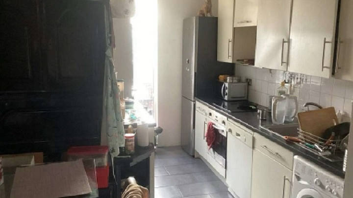 - Fitted kitchen with a range of matching wall and base units, built-in oven and hob with extractor above, space for washing machine, space for tall fridge/freezer, space for dishwasher
