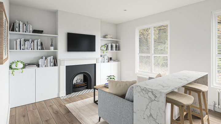 The split-level property also benefits from: restored period features throughout, including cast iron fireplaces, traditional radiators and plantation shutters; a modern designer kitchen including brand new integrated appliances and smart home devices, all with manufacturers warranties; permit free on street parking; and the option for a ground floor private cycle storage unit.