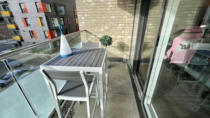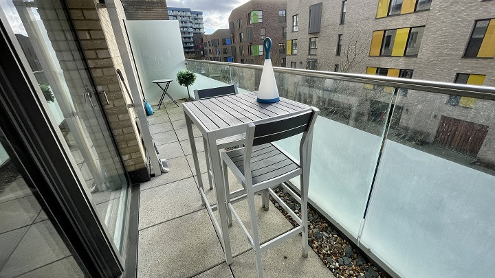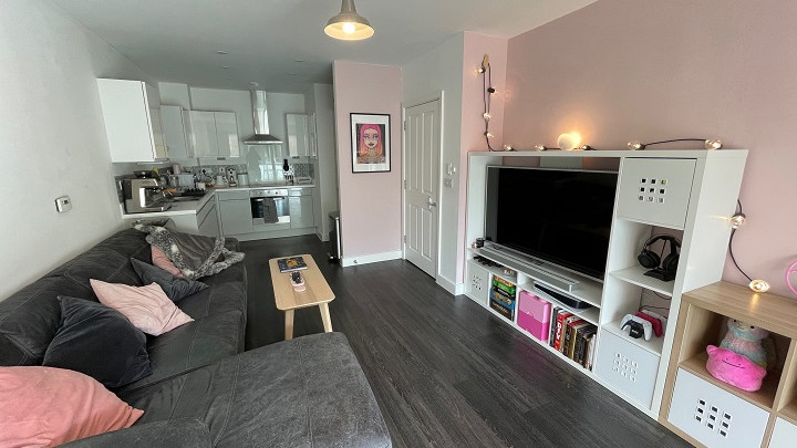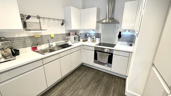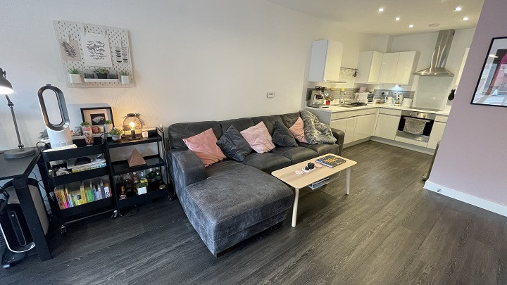 - Open plan living room/kitchen area with access to large balcony via double glazed doors