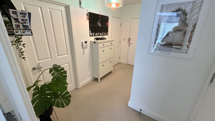 - Entrance hall with two large storage cupboards, one housing Washer Dryer